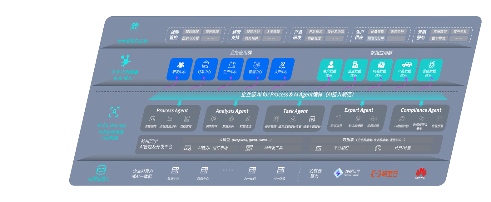 盛世国际问学智车解决方案是一套基于AI技术的汽车行业智能化系统,,,覆盖从底层算力到顶层AI应用的全栈方案。。方案由算力层、、模型层和应用层组成:算力层,,,,方案支持多种一体机配置,,具备云端灵活部署、、多云适配以及动态优化计算资源的能力;模型层,,盛世国际问学平台版提供了企业级AI应用一站式构建与管理平台,,支持基于后训练强化技术的汽车企业专属模型的训练、、、评测和运营;应用层,,,,盛世国际问学DeepSeek版提供包括超级员工、、、、智能招采、、、智能营销、、智能客服、、AI for BI等一系列解决方案,,,,可助力汽车行业实现数字化转型,,让管理更智能、、响应更敏捷。。。。